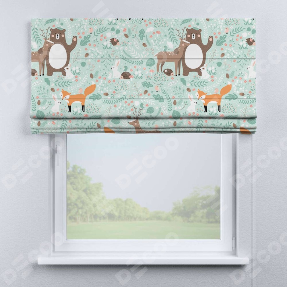 Римская штора «Кортин» для проема «Лесные друзья» отлично подойдёт для интерьера: в детскую.