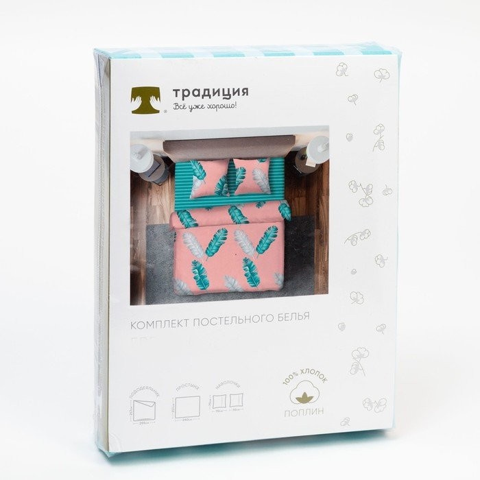 Постельное бельё евро «Традиция Перья», размер 200×217 см, 220×240 см, 70×70 см, 2 шт, поплин, 100% хлопок
