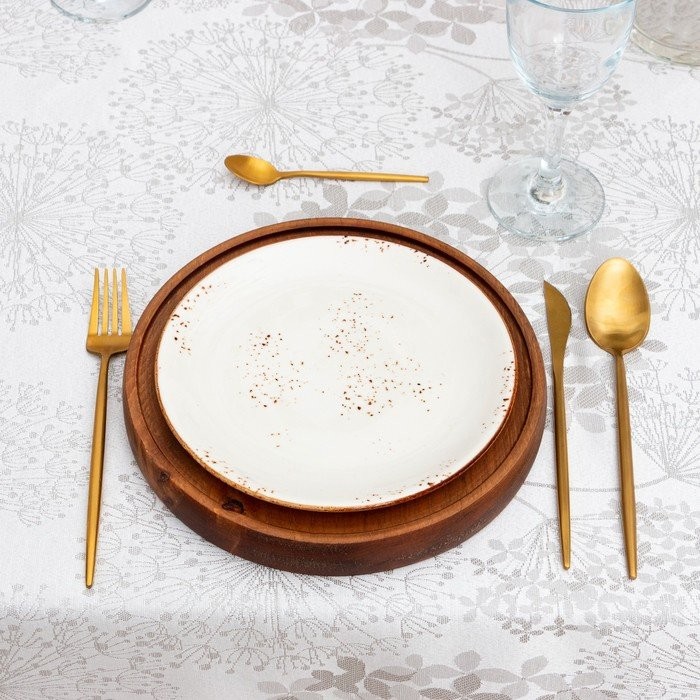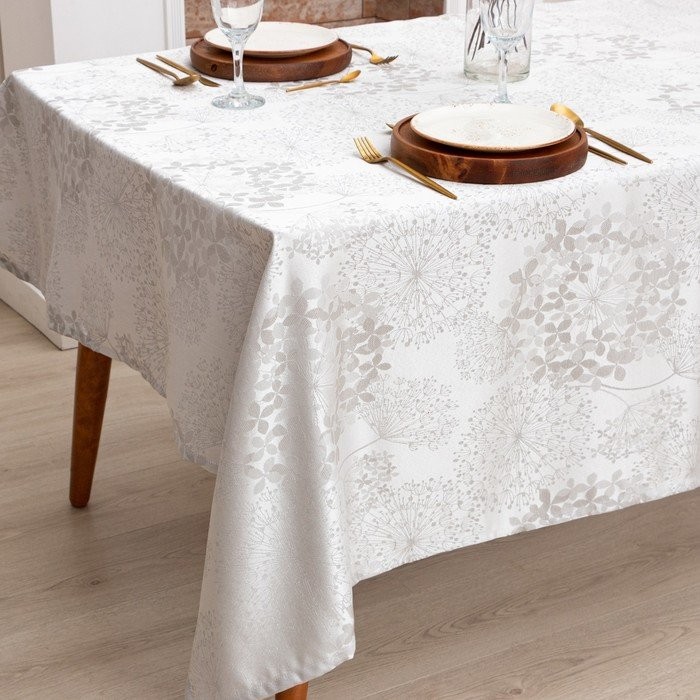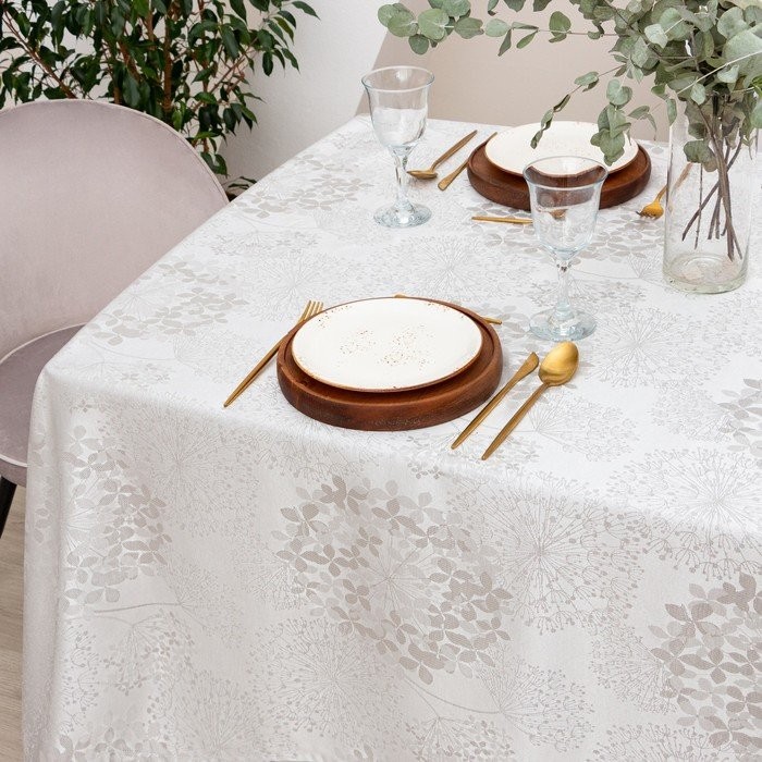 Скатерть Этель «Flowers» цв.серебро, 142*180 +/-3 см, 115 ±10 гр,100% п/э