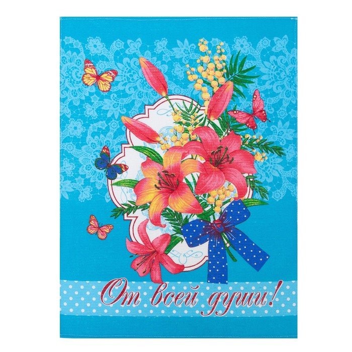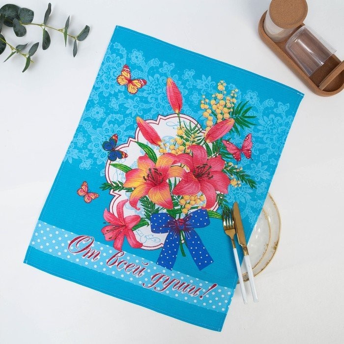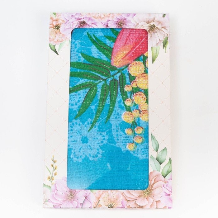 Полотенце в коробке 45×60 см, Лилия, бирюза, вафля, 160 гр/м2, хлопок 100%