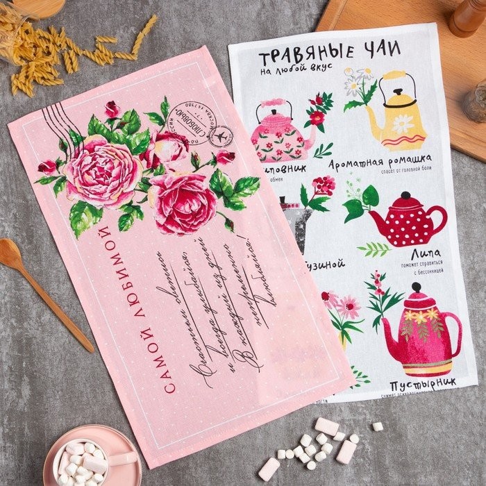 Набор кухонных полотенец Доляна «Для тебя», 35х60см-2шт, 100% хл