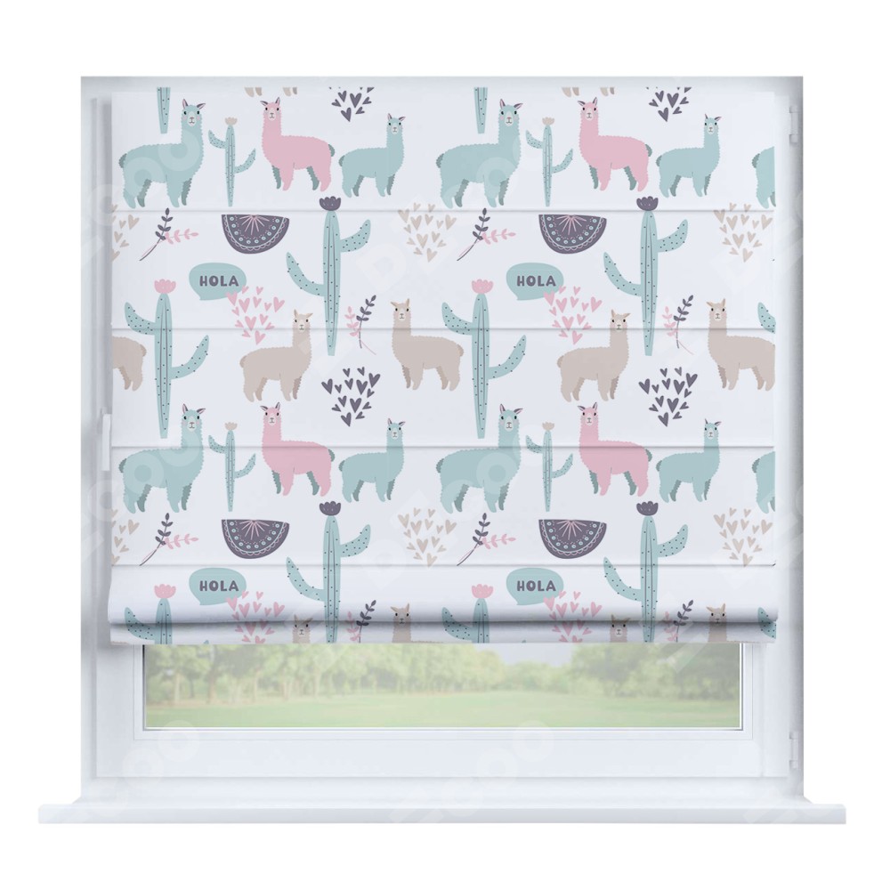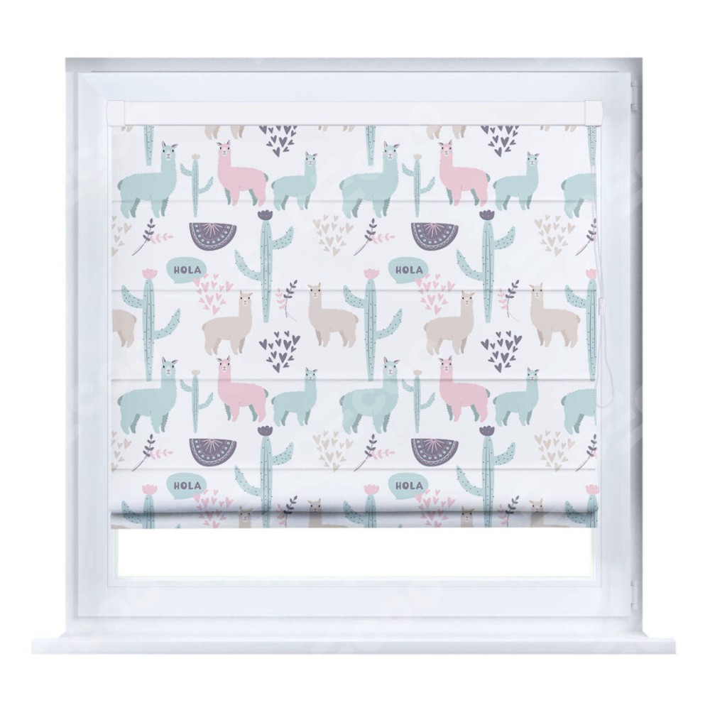 Римская штора «Кортин» на створку «Милый лама» предоставлена в следующих характеристиках:
