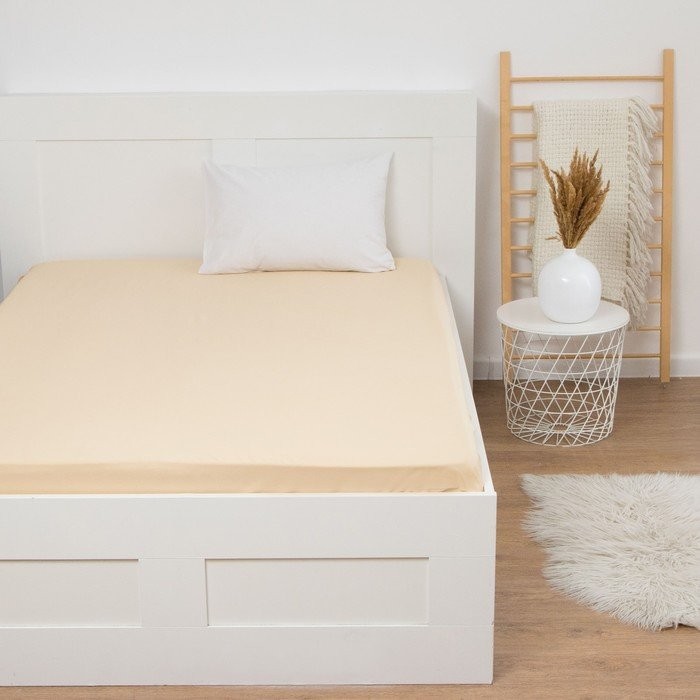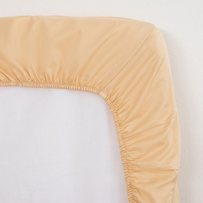 Простыня на резинке Этель 160*200*25 см, цв. бежевый, 100% хлопок, мако-сатин, 128 г/м²