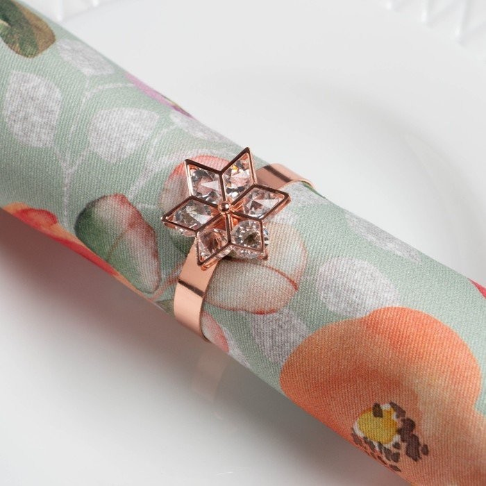 Набор салфеток с декорат. кольцами «Цветочный узор» 46х46см — 4 шт, 100% хл, саржа 190гр/м2