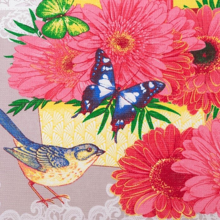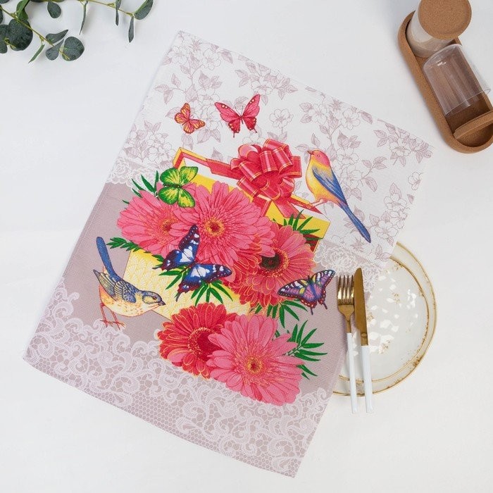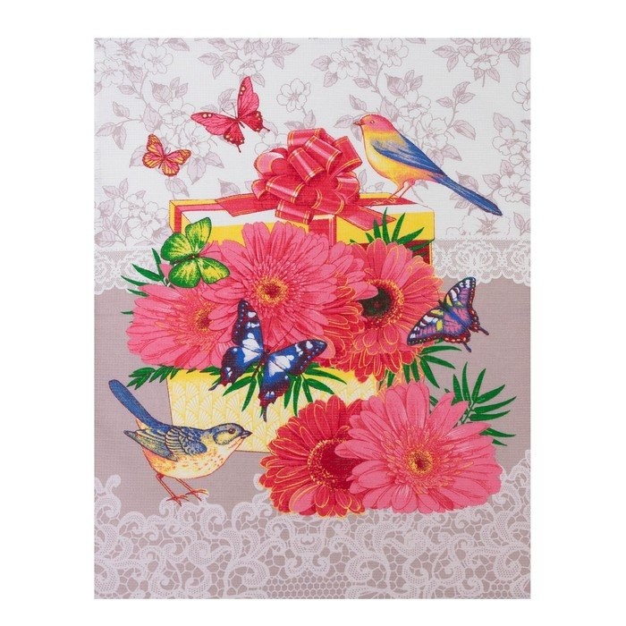 Полотенце 45×60 см, Герберы, розовый, вафля, 160 гр/м2, хлопок 100%