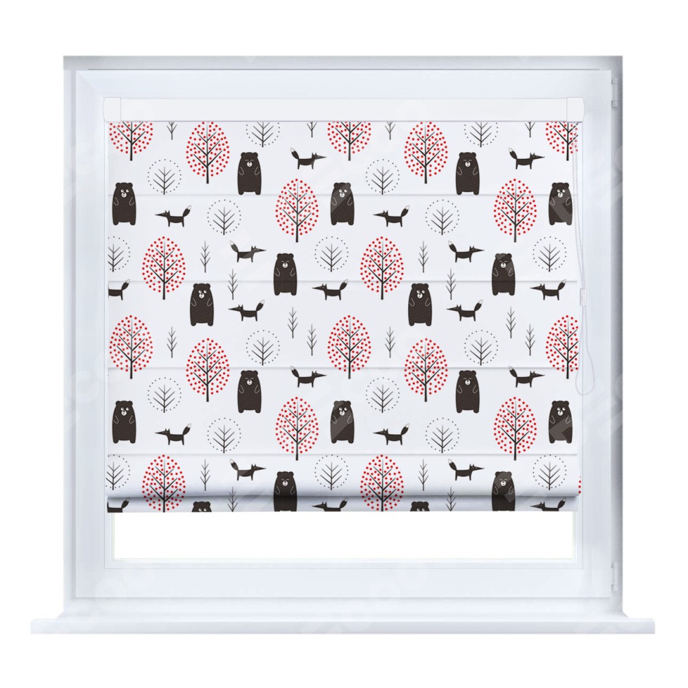 Римская штора производителя «Cortin», устанавливается на створку окна, пошита из ткани блэкаут с нанесением сублимационной печати «Сканди лес». Штора шьётся по индивидуальным размерам, для данного типа римской шторы возможная ширина от 35 до 150 см., высота до 250 см.