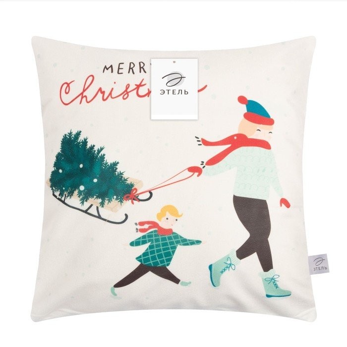 Наволочка на подушку Этель «С елкой», 40*40 см, 100 п/э, велюр