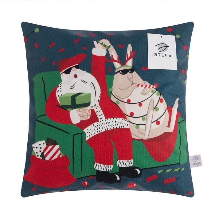 Наволочка на подушку Этель «Дед мороз и заяц», 40*40 см, 100 п/э, велюр