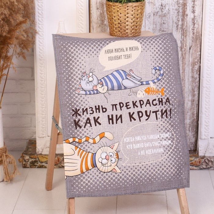 Полотенце 45×60 см, Кошачьи тайны (рис.1), рогожка, 170 гр/м2, хлопок 100%