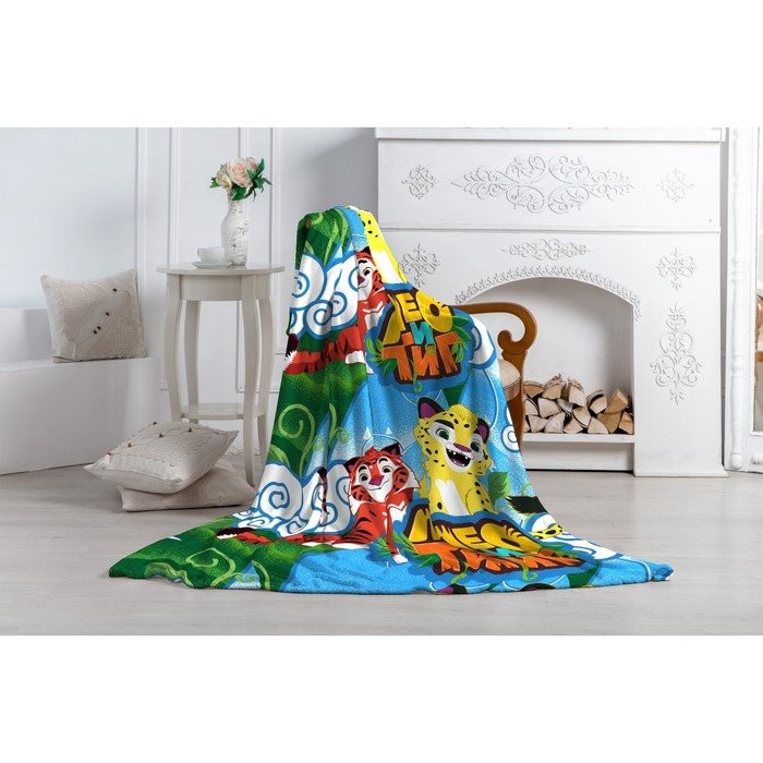 Плед Павлинка Лео и Тиг зеленый 100х150см аэрософт, 190г/м пэ100%