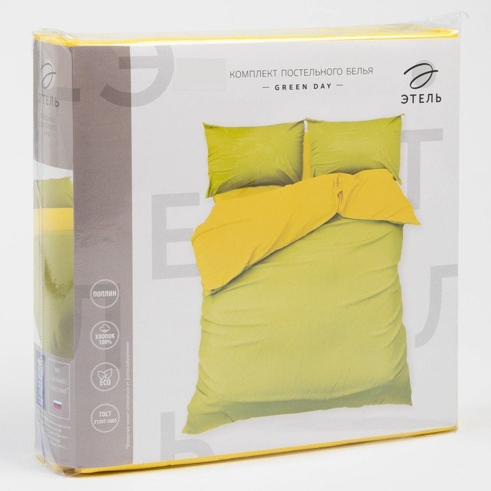 Постельное белье Этель евро Green Day 200*215, 220*240, 50*70−2 шт, поплин