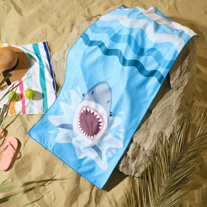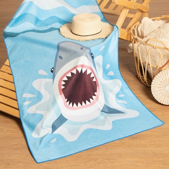 Полотенце пляжное Этель «Акула» 75*140 см, микрофибра, 100% п/э, 230 гр/м2