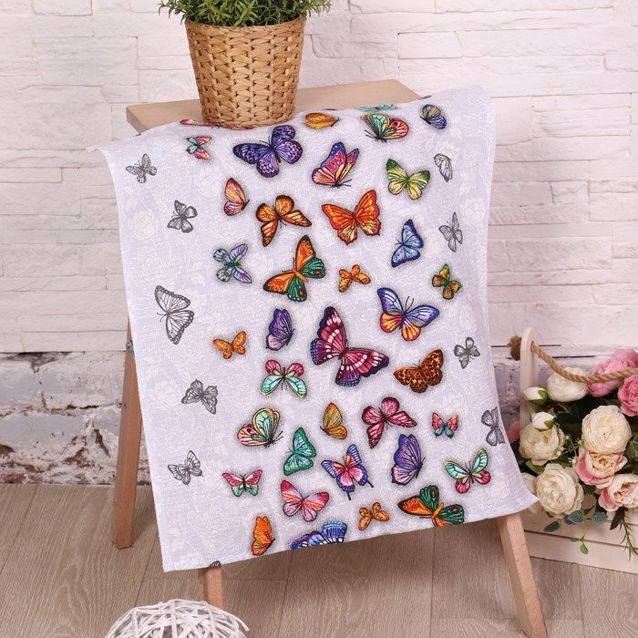 Полотенце 50×60 см, Бабочки, вафля, 170 гр/м2, хлопок 100%