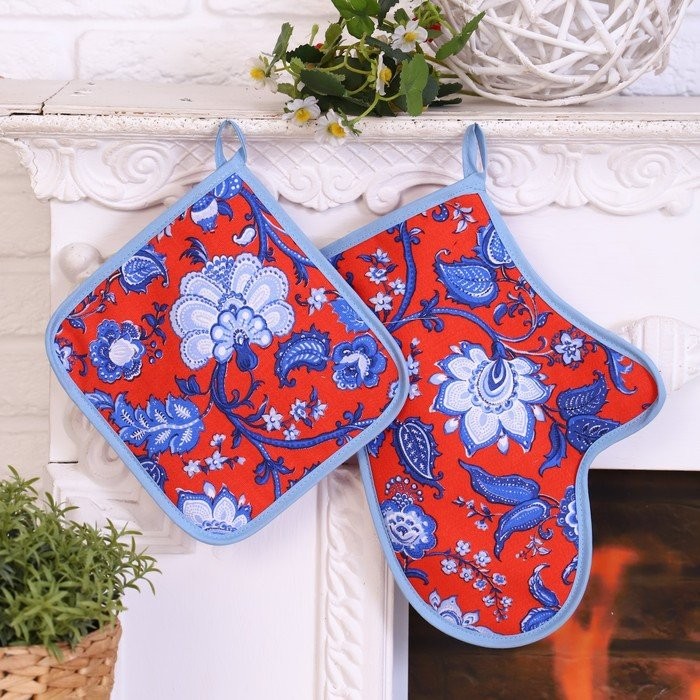Набор кухонный (Варежка 26*30 см+прихватка 18*18 см) «Узор терракотовый», рогожка, хл 100%