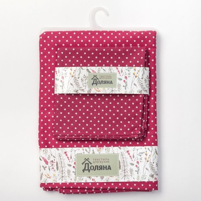 Набор Доляна скатерть 145х200см/салфетки 40х40см 4шт, Горох цв.красный, 100%пэ