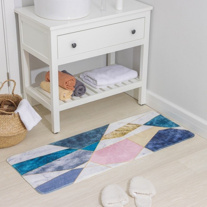 Вас удивит мягкая и нежная текстура коврика, а разнообразные яркие расцветки помогут оживить и дополнить уже существующий дизайн ванной комнаты. Отдельно порадует его низкая стоимость и высокое качество.