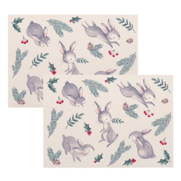 Набор салфеток на стол «Зайчата», ПВХ, 40*29 см, 2 шт