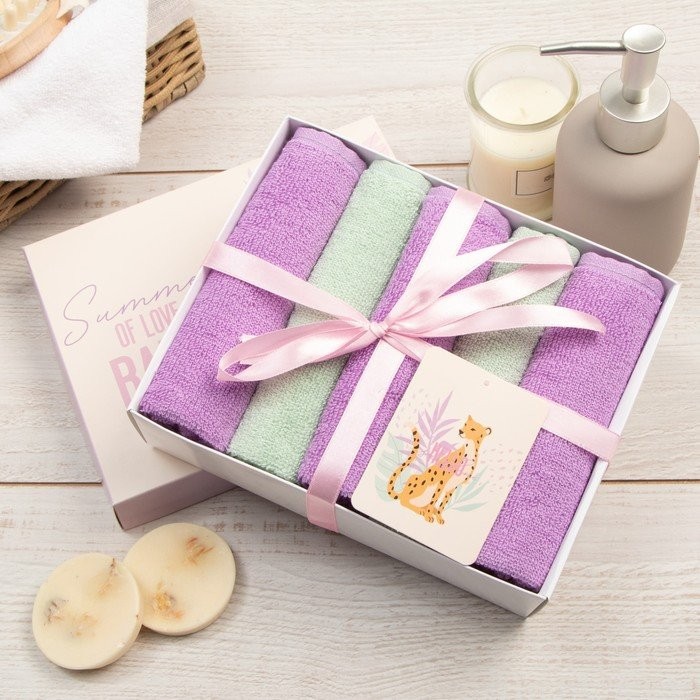Набор махровых полотенец Этель Summer 30×30 см -5шт, 100% хлопок 340 гр/м2
