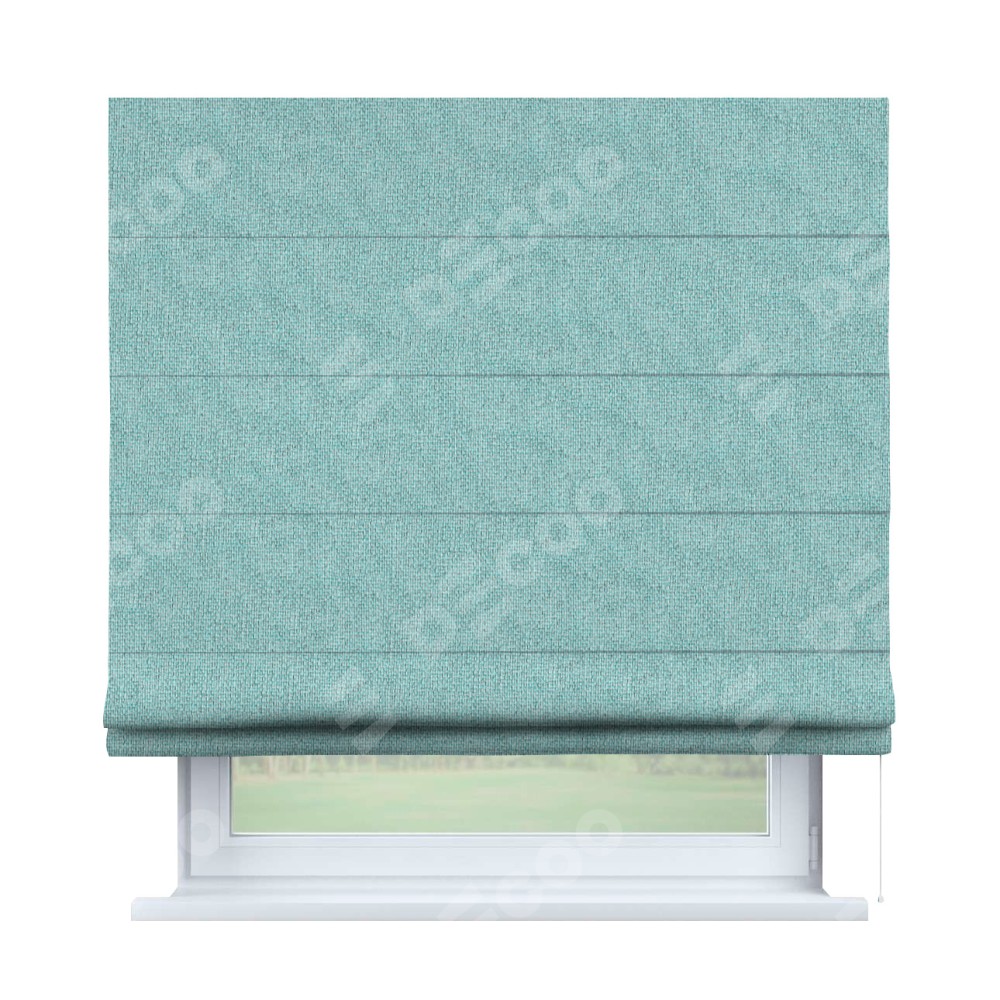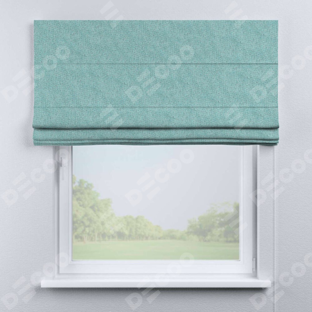 Римская штора производителя «Cortin», используется для проёма, пошита из ткани лён димаут бирюзовый, артикул ткани 23. Имеет универсальный механизм и подходит для монтажа: на потолок, на стену и в нишу.
