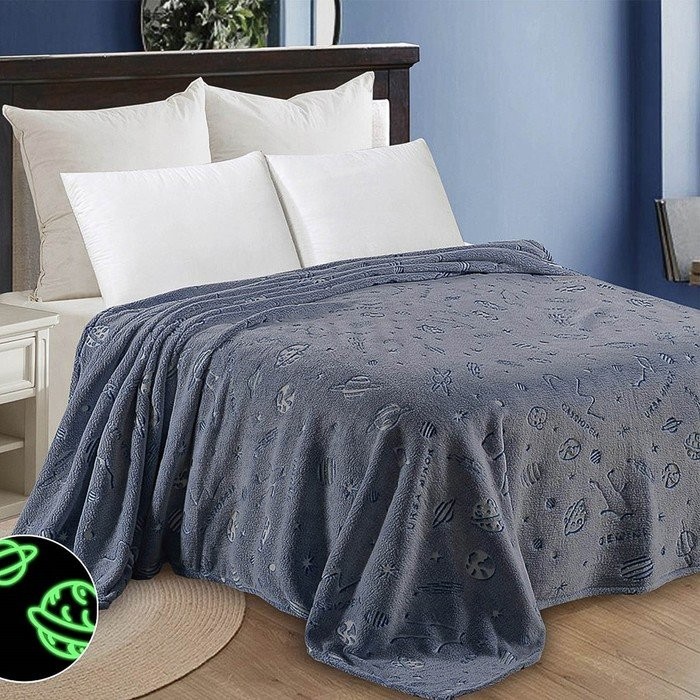 Плед светящийся 180×200 см «Планета», велсофт 260г/м