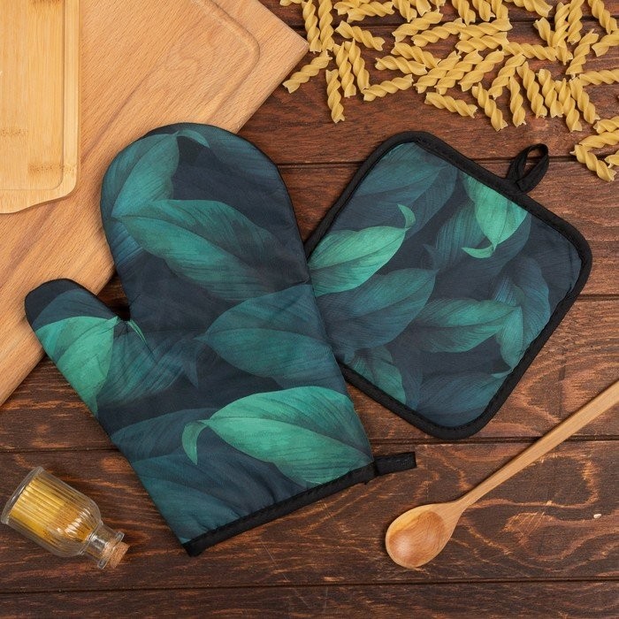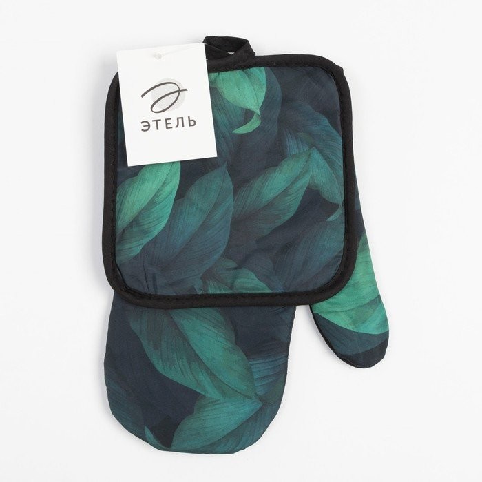 Кухонный набор (2 предмета) Этель «Листья», прихватка 17×17 см, варежка 26×16 см, 100% п/э