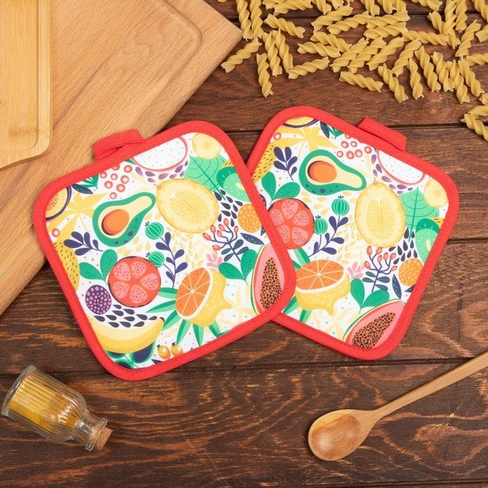 Кухонный набор (2 предмета) Доляна «Фрукты», прихватка 17×17 см, 100% п/э