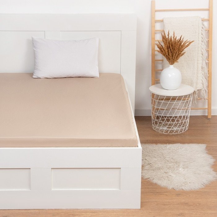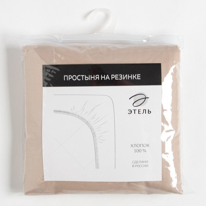Простыня на резинке «Этель» 160х200×25 см, бежевый, 100% хлопок, перкаль