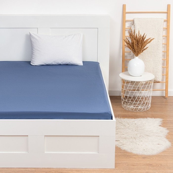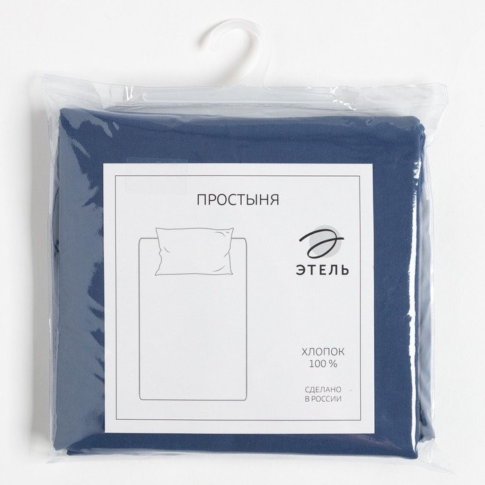 Простыня Этель 160*240 ± 3 см, цв. синий, жатый хлопок, 140 гр/м2, 100% хлопок