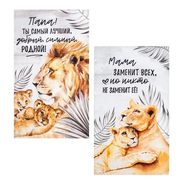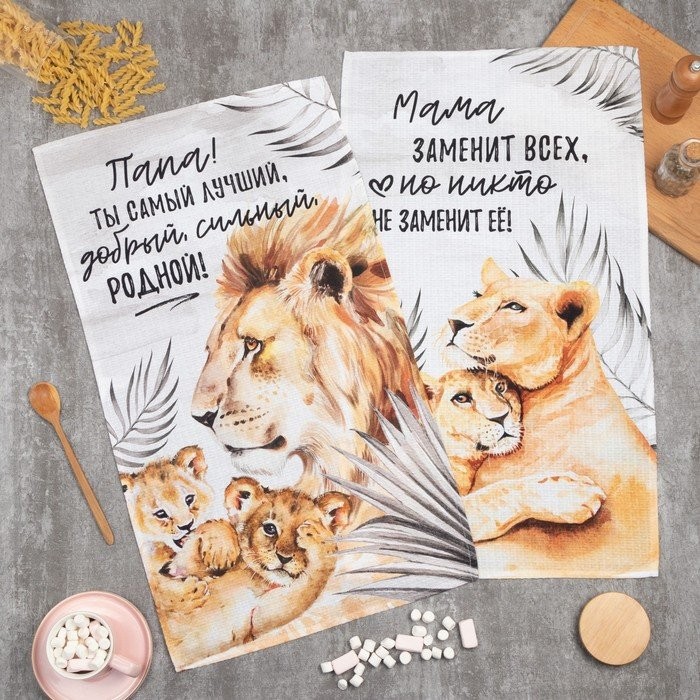 Набор кухонных полотенец Этель «Семейство кошачьих» 40х73см — 2 шт, 100% хл, вафля 160 г/м2