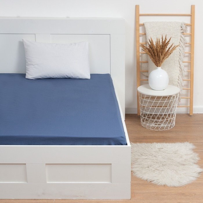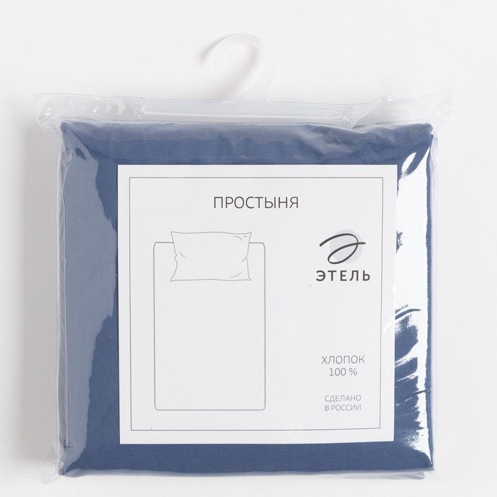 Простыня Этель 220*240 ± 3 см, цв. синий, жатый хлопок, 140 гр/м2, 100% хлопок