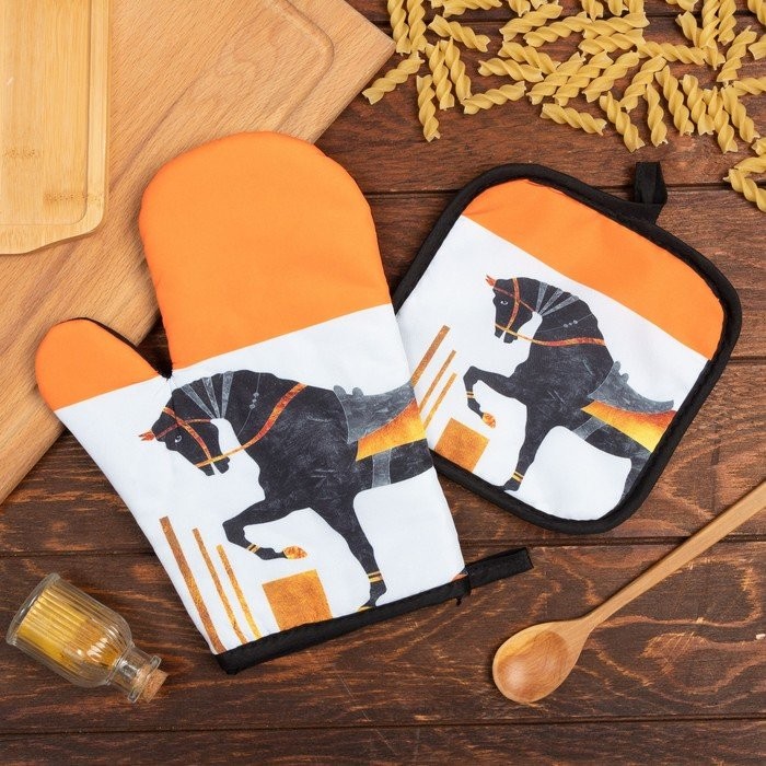 Кухонный набор (2 предмета) Этель «Конь», прихватка 17×17 см, варежка 26×16 см, 100% п/э