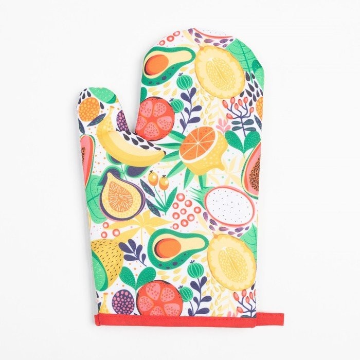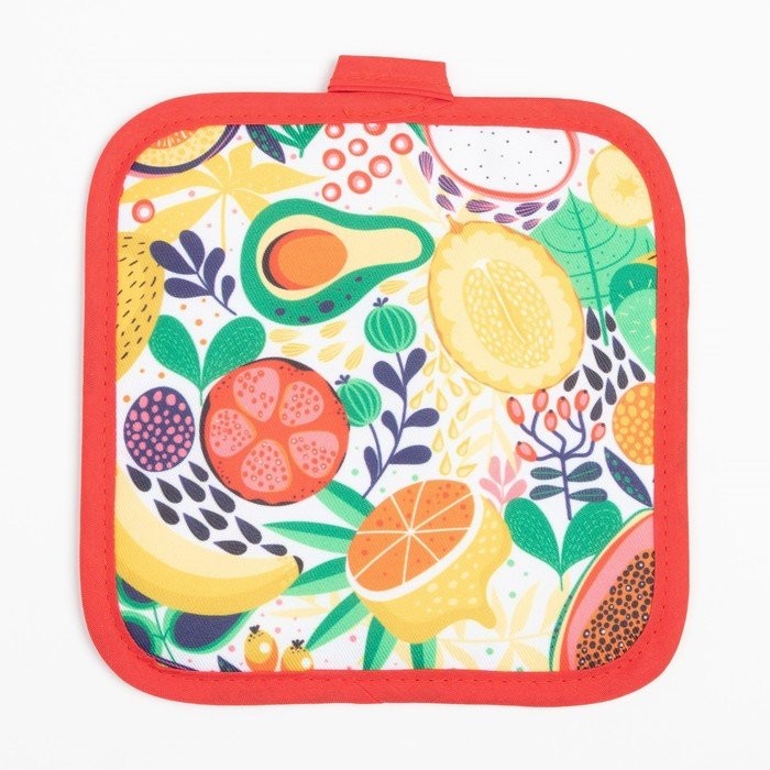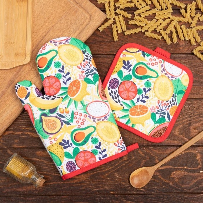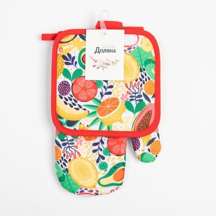 Кухонный набор (2 предмета) Доляна «Фрукты», прихватка 17×17 см, варежка 26×16 см, 100% п/э