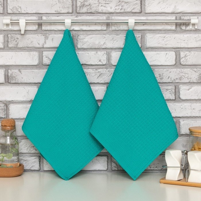 Набор кухонных полотенец Доляна, цвет зелёный, 35х60см-2шт, 100% хл, вафля, 220 гр/м2