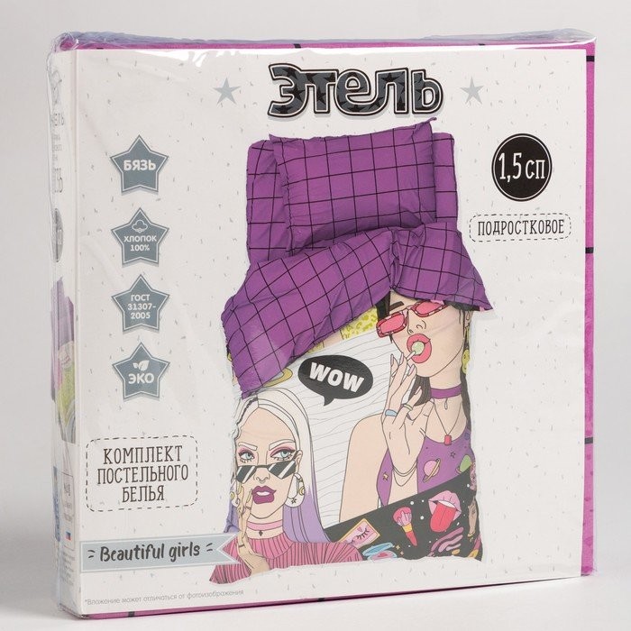 Постельное бельё Этель 1,5 сп «Beautiful girl» 143×215 см, 150×214 см, 50×70 см -1 шт, 100% хлопок, бязь