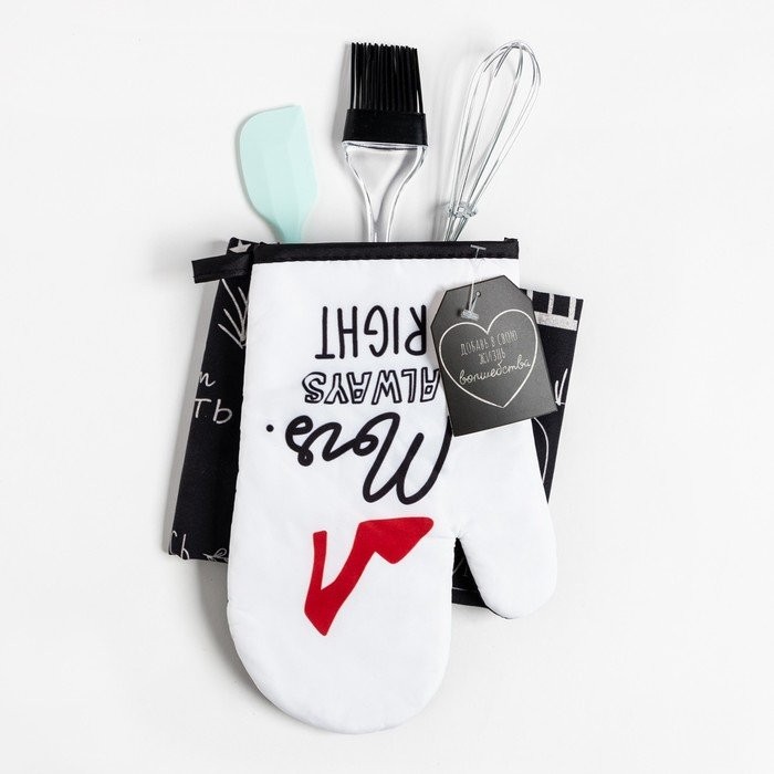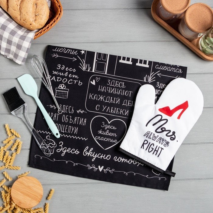 Набор подарочный Mrs right: полотенце, варежка-прихватка, кисть, лопатка, венчик