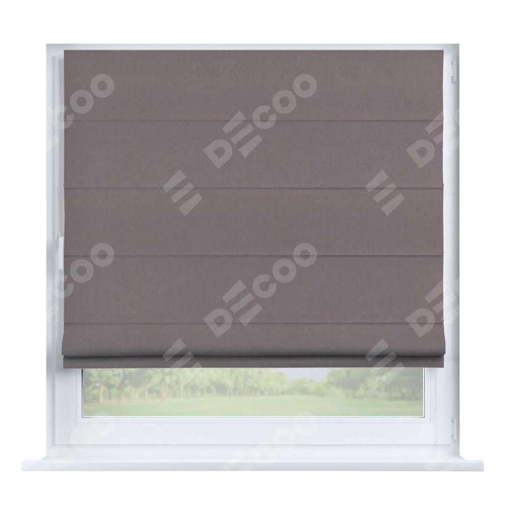Римская штора производителя «Cortin», устанавливается на створку окна, пошита из ткани вельвет тёмно-бежевый, артикул 82527. Штора шьётся по индивидуальным размерам, для данного типа римской шторы возможная ширина от 35 до 150 см., высота до 250 см.
