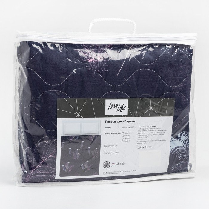 Покрывало LoveLife 1.5 сп «Перья» 150*210±5 см, новосатин,80 г/м2
