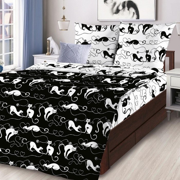 Постельное бельё 1,5сп ЛидерТекс Черный кот вклад 145×215, 150×215, 70×70 2шт, бязь 120гр/м хл100%