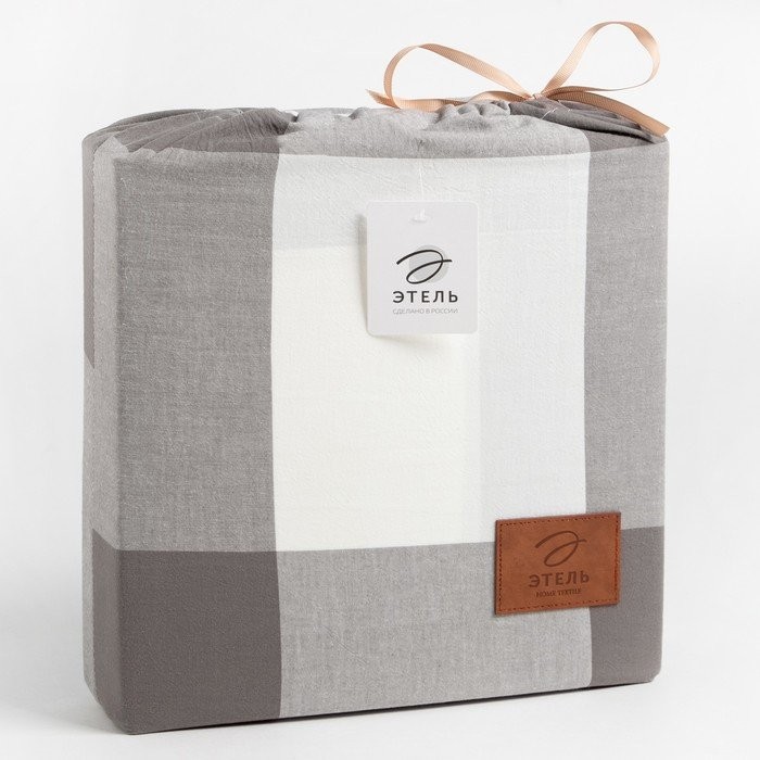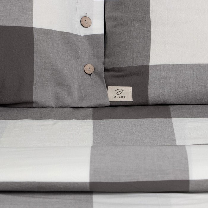 Постельное бельё Этель Евро «Серая клетка» 200×220 см, 220×240 см, 50×70−2шт,100% жатый хлопок,140гр/м2