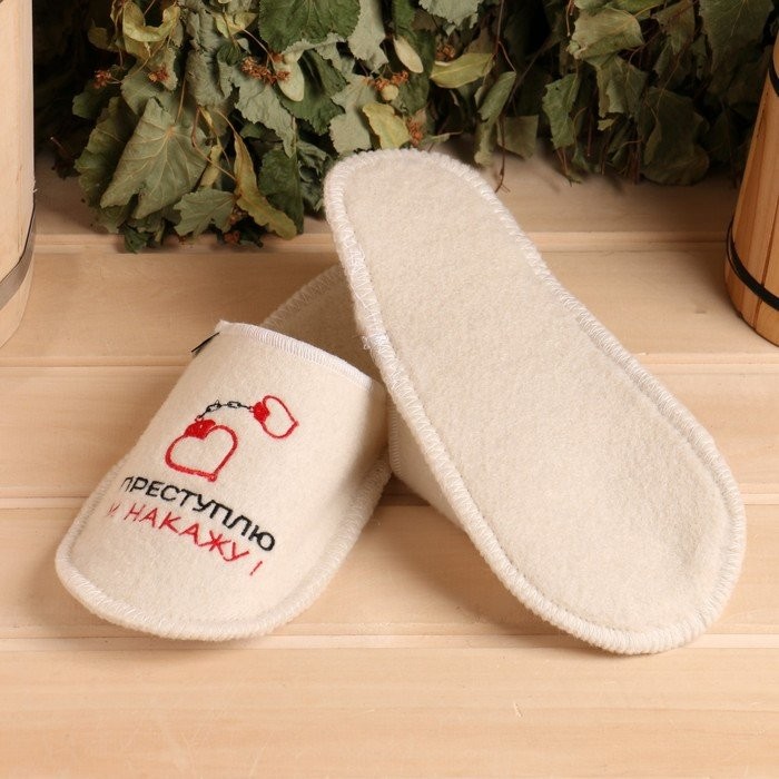 Тапочки для бани белые с вышивкой «Преступлю и накажу» женские (26 см внутр. стелька)