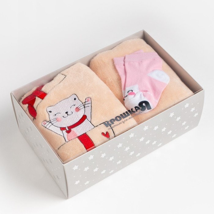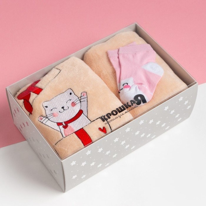 Подарочный набор Крошка Я «Кошечка», плед 90х100см, носки 10−12 см