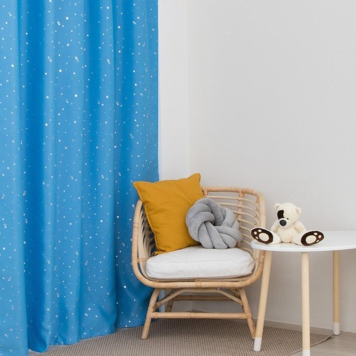 Портьера Этель «Звезды» без держателя, цвет голубой, 110×260 см, блэкаут, 100% полиэстер