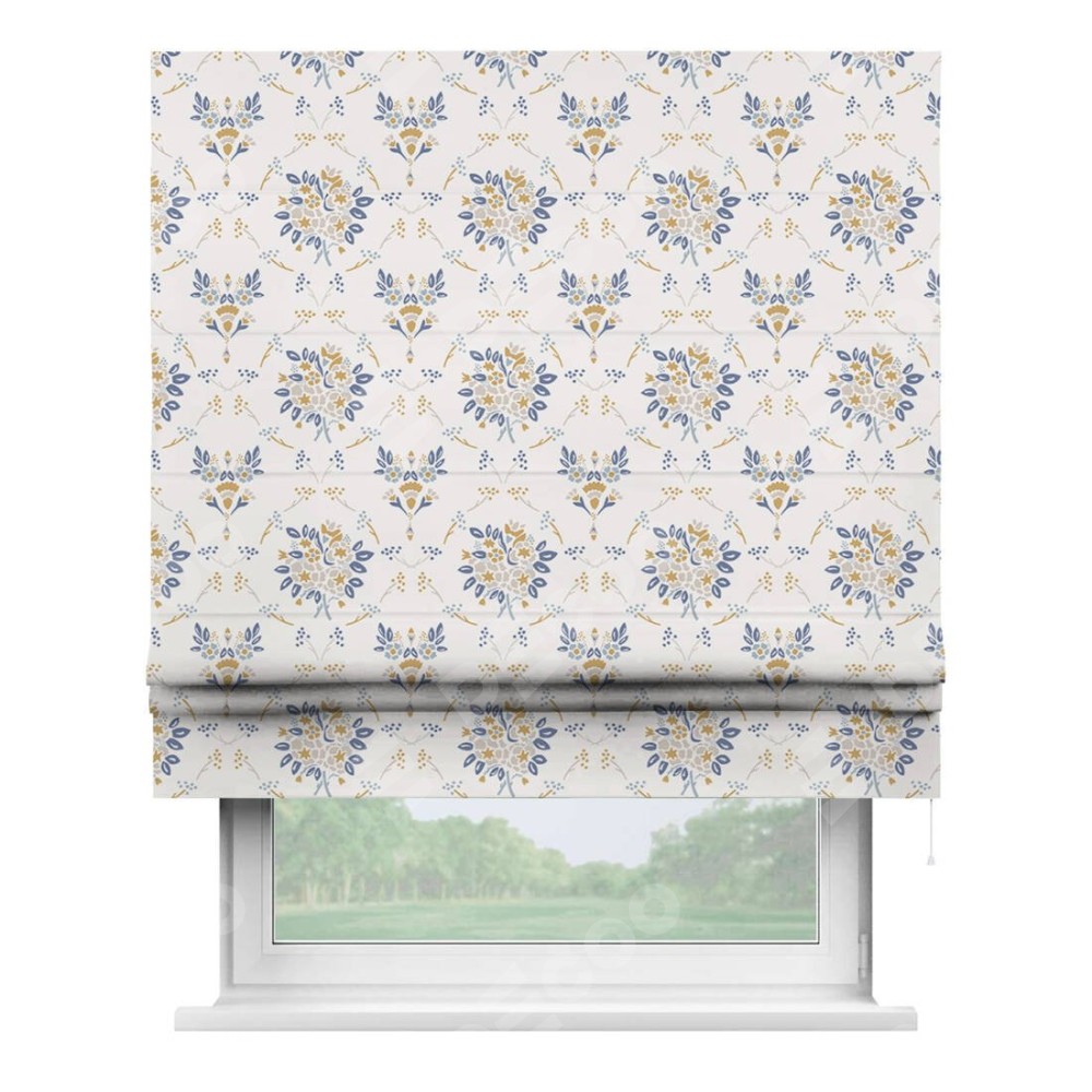 Римская штора производителя «Cortin», используется для проёма, пошита из ткани блэкаут с нанесением сублимационной печати «Французский цветок». Имеет универсальный механизм и подходит для монтажа: на потолок, на стену и в нишу.
