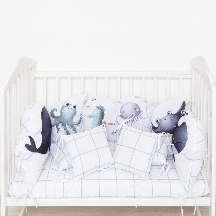 Бортики в кроватку Крошка Я «Морские друзья» (60х42см- 2шт, 30х42см- 4шт,30х30см- 4шт),100% хлопок