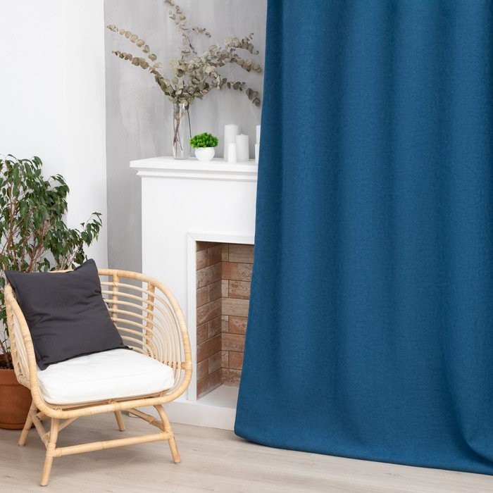 Штора портьерная Этель «Структурная», цвет синий, на шторной ленте, 145×265 см, 100% п/э