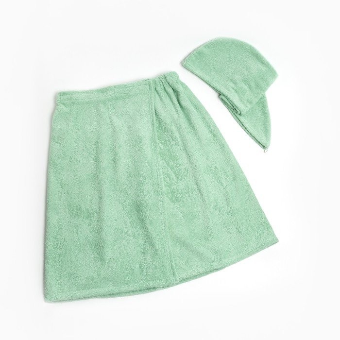 Набор для сауны Экономь и Я: полотенце-парео 68*150см +чалма, цв.св-оливковый,100%хл,320 г/м2