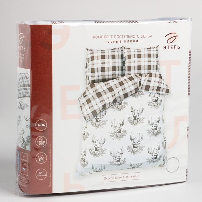 Постельное бельё Этель евро «Серые олени» 200×217 см, 220×240 см, 70×70 см — 2 шт