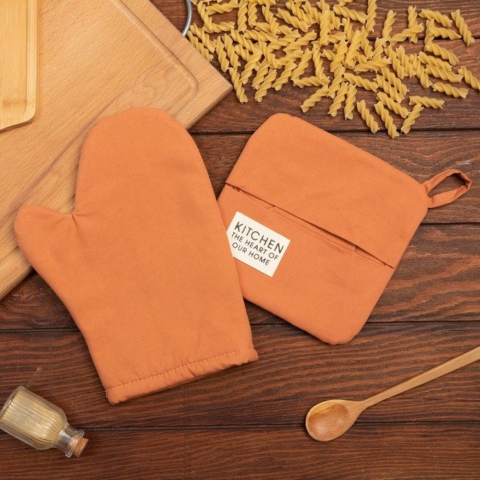 Набор кух. Этель Kitchen, цв. оранжевый, варежка-прихватка 18×29 см, прихватка 19×19 см