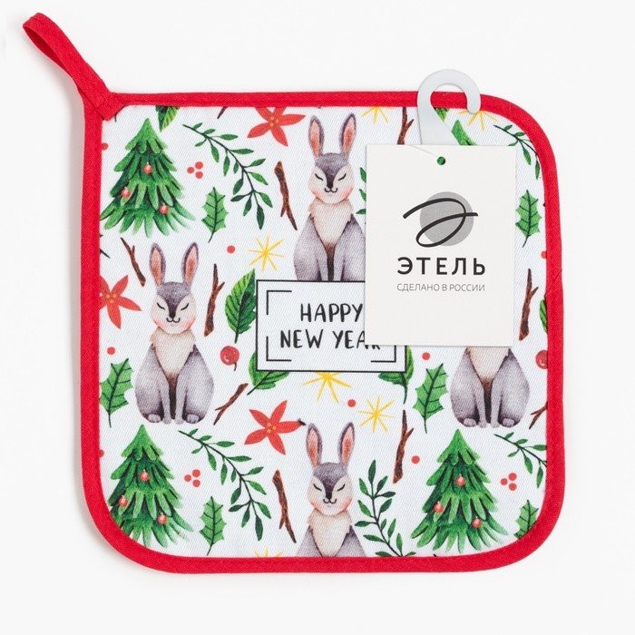 Прихватка «Happy New Year» 19×19 см, саржа, 100% х/л, ватин 250 г/м2