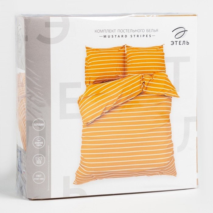 Постельное бельё Этель Дуэт Mustard stripes 143х215см-2шт, 220х240см, 70х70см-2шт, 100% хлопок, поплин
